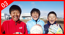 第3回目は、名取市の「閖上サッカースポーツ少年団」で活躍する、3人の小学生に会いに行ってきました。
