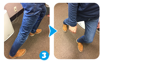 可能であれば、お尻をひざの高さまで下げてみてください。できる限りお尻を下げたら、元の体勢にゆっくり戻します。
