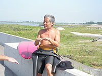 61才で現役サーファー、越後一雄さんはサーフィン歴42年目に突入!共に汗を流した仲間はだんだん現役を退き、おそらく越前さんが県内最年長です。 仙台市出身の越後さんがサーフィンを始めたのは、20才の頃。高校時代はヨットに熱中し、サーフィンの存在すら知りませんでした。それが、たまたま湘南へヨットハーバーを見に行った折、サーフィンを間近で見て心揺さぶられるように。個人競技で、好きな時間に好きなだけやれる!そんなところに惹かれ、仙台市内で必要用具を揃えました。とはいえ、サーファー人口が圧倒的に少ない時代ですから、足りないものも多かったそうです。例えば、流れ止めやワックス。これらは、越後さんを応援する仲間が東京から送ってくれました。 初めて波にのったときのことは今でも鮮明に覚えています。ラッキーなことに初心者にもかかわらずスープ(波がブレイクした後に発生する白波)に乗ることができ、俺はうまいかも?と…。しかし、そんなに甘いものではなく以後、苦戦しつつも独学でサーフィンを追及しました。やがてサーフィンショップを開き、弟や従弟をも波乗り仲間にし、今では、二人の息子さんもサーファーに。長男の将平さんにおいてはショートボードのプロになるまでに成長しました。 そんな越後さんは8月末に南相馬市の北泉海岸で開催された「2008年度 第43回全日本選手権サーフィン大会」のロイヤルクラス(日本サーフィン連盟の役員だけが参加できるクラス)で、最年長サーファーとして参加。年齢を気負いはなく、勝負だから年齢は関係ありません!ときっぱり。若いサーファーについても、「波はその日の天候によって違う。絶好の場所を見極める目は42年続けたからこそわかるもの」と。越後さんの目標は、一日でも長くサーフィンを続けること。好きなことが出来るって幸せ。これからも宮城の最年長サーファーとしてリードして下さいね。 (高橋亜由美)