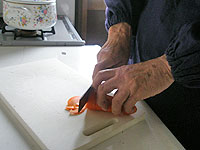 小学校は男校舎で、教員時代は柔道部顧問と男社会で生き抜いてきた安海さんが奥さまの和子さんと一緒に5年前に立ち上げたのが、賢和会「男の台所」です。以前、お二人が高齢者に弁当宅配サービスをしていたとき、80才のおばあちゃんが手を合わせて「ありがとう」とつぶやいたシーン。体の不自由なご主人のためにお弁当を注文するおばあちゃんは、自身も思うように台所に立つことができずにいたのです。そして「病気になっても地域に支えられるような社会を作らなくては」と思い、男性シニア向けの料理教室を開くことに決めたのです。「『食』という字は”人が良くなる”と書くように料理に男も女もない。また有名料理店のシェフには男性が多いように男は料理ができないのではなく、知らないだけだ」という賢さんのしっかりした志で教室は始まりました。メトロポリタン仙台の料理長だった佐々木氏、現料理長の須藤氏の指導の下、メニューは栄養士と賢さんが考案し、ご飯の炊き方からしめさんまなどの季節料理に至るまで年40回の教室は本格的です。デザートは「リンゴのコンポート」「豆乳プリン」などお孫さんと作れるものを、と工夫しました。始めは何も知らずに台所にあった切れの悪い包丁を持ってきていた人も、5回も通えばキャベツの千切りが出来るように。そして、教室で得た知恵は社会に還元するのが男の台所のモットーで、デイサービスセンターで出前講座を開いたりしています。高齢社会は他人事ではないだけに、真剣にその問題と向き合う皆さん(OB・現役生は300人)。料理というツールを通して仲間を増やして欲しい、そしていつか男の台所を全国発信したい!それが男社会で育った安海さんの夢なのです。 (高橋亜由美)