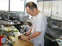 先月29日にオープンしたばかりの「仙台屋食堂」。工場に囲まれて見落としそうな場所に、ひっそりとその佇まいはあります。グレーの年季の入った2階建ての建物で看板もない、本当に営業しているのか?と思ってしまうほどですが(失礼!)、店主の山内さんは、午前11時の開店(15時まで・平日のみ営業)に向け、午前8時から仕込みをしているんです。しかし、一日の来客数は両手で数えても足りるほど(!)。経費がかけられないだけに全てを手作りしなくてはならず、看板制作もこれから着手。それにしても「店頭の自動販売機の方が儲かっています」だなんて…。 そこで急遽旗揚げされたのが「Goodモーニング商売繁盛プロジェクト」!私たちは山内さんの壮絶な人生、苦難を乗り越えたことに心動かされたのです。山内さんは、中国料理この道25年で県内ホテルの料理長も務めていました。しかし、3年前に腰を悪くし入院、その間ホテルは倒産。行き場のない、不安と絶望の日々を過ごしていたとき、ホテル時代にお世話になった仙台製麺所のオーナーが「うちの空き店舗で食堂をやってみないか」と救いの手を差し伸べてくれたのです。社会復帰を目指していた山内さんにとっては願ってもないチャンス。早速今年6月からペンキを塗ったり、ガスレンジを解体してガスの通りを良くしたり、たった一人で再起をかけました。お金がかけられずとも、支えてくれるのは家族や仲間、そして25年のキャリアです。野菜は農家である実家から、肉は決して高価なものではありませんが、旨みが出る”25年の技”を活かして。カウンター越しにお客さんと交わす会話は、ホテル時代より距離が縮まっている感があり大切にしたいそう。もちろん、味は折り紙つきです。今朝頂いた「豚肉とナスの甘みそ炒め丼」は、こってりしないように自家製みそから作るほどの力の入れようです。「お客さんにびっくりして欲しいんです。外観はありふれた大衆食堂だけれど、味は本格的ですから」と。次々にレシピが浮かび、調理して携帯カメラに収めてはいつか発表したいという夢もあります。その前に千客万来!丁寧な仕込みを心掛ける山内さん=「山ちゃん」。今日もじっくり丁寧に調理場に向かいます。 (高橋亜由美)
