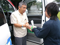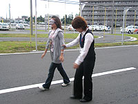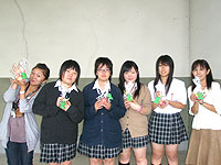 昨日から始まった「平成20年秋の交通安全県民総ぐるみ運動」に伴い、色麻町では色麻町役場と加美警察署、そして宮城県加美農業高校が連携し「交通安全マナーアップ交差点キャンペーン〜人垣作戦〜」が今日、四釜交差点で行われる予定でしたが、雨のため中止。当初は家庭クラブと農業クラブの8人が、生活技術科の1〜3年生が今月末に控える前期末考査の勉強と両立しながら手作りしたフェルト製のマスコット「ぶじかえる」と、農業科の生徒達が校内の農場で育てたリンゴ「つがる」をセットにしてドライバーに配布する予定でした。が、上空の雨は一向に止む気配はなく…。 それでも、彼らのドライバーに対して交通安全の意識を高めてもらおうという気持は変わりません。自転車通学の菅原さんは、雨の朝は車の激しい水しぶきで制服のスカートが濡れたことがあるし、家族に車で送迎してもらっている児玉さんは、対向車がとまれの表示で一時停止しないというマナーの悪さを指摘します。他にも、歩行者の信号無視も目立つという意見も聞かれました。 今月18日現在、9月の県内の交通死亡事故は11件、死者は12人と多発しています。総ぐるみ運動の基本方針は高齢者の交通事故防止ですが、ドライバーのマナーの悪さで迷惑を受けているのは高齢者だけではありません。ドライバーも歩行者や自転車の立場にたって、また歩行者もドライバーの立場にたって双方で思いやれるように心掛けましょうね。 (高橋亜由美)