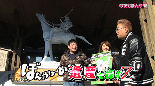 伊達政宗公が築いた城下町岩出山。JR有備館駅前で仙台駅ステンドグラス前にあった政宗騎馬像を発見。