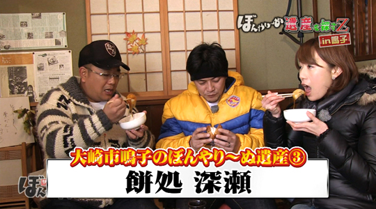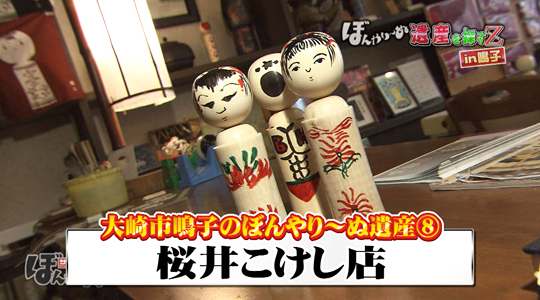 鳴子のゆるキャラ「なる子ちゃん」。特技が「首が回ること」というので、回そうとする伊達ちゃんは、いじめている様にしか見えない…。