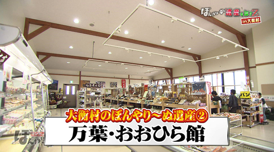 2012年8月オープン。野菜、果物の産直コーナーや、工芸品などのお土産コーナーも充実。ロケでは万葉メンチカツ、万葉コロッケを堪能!撮影が終わった後も、野菜や惣菜をくまなく物色するぼんやり~ぬ一行でした。