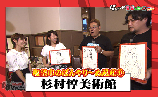 塩釜ゆかりの杉村惇画伯の絵画を鑑賞。絵画につけられた作品名を当てるミッションに挑戦しましたが、これがなかなか難航。また「デッサン」にも挑戦し、3人が描いた作品を期間限定で展示していただきました。「ぼんやり~ぬTV」美術館へ初潜入となりました。