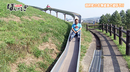 利府町の名物遊具 長さ約108mのローラー滑り台は、普段スベりたくない伊達ちゃんもバツグンにスベれました!ぜひお試しあれ!