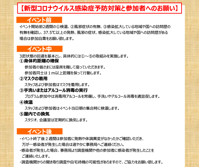 海と日本 さばける塾inみやぎ 新型コロナウイルス感染予防対策と参加者へのお願い