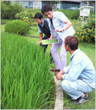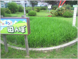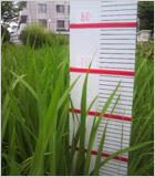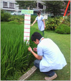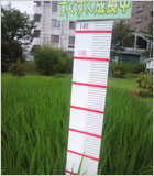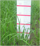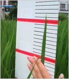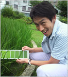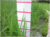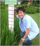 順調に育っている稲は現在82センチほど。また栄養状態を見るために色を図る秘密兵器?「カラーチャート」で調べてみても、上から二番目のきれいな緑★栄養十分です!