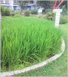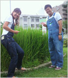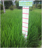 私の腰くらいの高さになってきた稲たち。図ってみると102センチになってましたぁ〜。