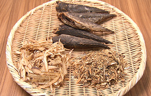 | ●スープ | サバ アジ ウルメの節と 昆布やシイタケを加えた魚介系スープに 石巻産の薄口しょうゆの特製しょうゆダレを合わせます |