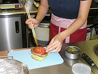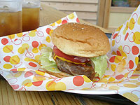 朝からボリューム満点のバーガー「ZAO BOOバーガー(big\800 small\600)」をモリモリ食べてきました!こういう取材の日は、朝ご飯を調整します、本番でおいしく頂くために…。 ZAO BOOバーガーは、地元の具材100%!もちぶたBBQZAO BOO-が開店した4月26日と同時に発売され、すでに蔵王の新名物として人気を呼んでいます。最大の特徴は、大河原町潟qルズの「みちのくもち豚」の柔らかく、脂身がしつこくない肉を使っていること。パテ(肉)の回りを、更にもち豚バラ肉で巻き、まるでジャーマンステーキのよう。肉がおいしいので、味付けはケチャップとマスタードでとてもシンプルに。中には、トマトやレタス、玉ねぎなど蔵王農家の朝採り野菜を挟み、野菜の甘みも旨さに一役買っています。蔵王の味がぎゅっと詰まったバーガーは、厚さが10cmに届きそうで、食いしん坊の私もライオンのように大きく口を開けないと入りきりません。でも、一口食べたときのあのおいしさ、忘れられないなぁ。ジューシーなのにあっさり味、トマトの甘いこと…。 地元産のバーガーを作りたい!その一心でご夫婦でおいしいお店を巡り、やっとたどり着いたのが潟qルズの「みちのくもち豚でした。見るからにおいしそうな豚を前に、これだ!とビビっときた瞬間です。夏のドライブのお供に、ZAO BOOバーガーはいかがですか? (高橋亜由美)