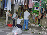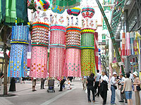 今日開幕の仙台七夕まつり。今年は約3,000本の竹飾りが街を彩り、2万人の人出を見込んでいます。午前8時、竹に飾り付けをしたり準備が進む中、観光客の姿もありました。横浜の土屋さんは、妹さんが仙台に住んでいるので仙台七夕は何度か見たことがあります。このすばらしさを伝えたくて、50年来の仕事仲間、荒井さん(市川在住)と橋本さん(八王子在住)を引き連れて夜行バスで見物にいらっしゃいました。今朝5時半に仙台到着、生まれて初めて見るものだから期待で胸いっぱいなのは橋本さん。全国的に有名になるだけありますね、お土産話にしますよ、と。荒井さんは、心を込めて作る姿が目に浮かぶようだし、その努力が飾りに表れていて感動します、とおっしゃいます。牛タンも買ったし、もう少し見物したら遠刈田温泉でゆっくりする予定だそうです。 白石市の高子さんは、宮城に住んでいながら七夕見物は初めて!白石和紙を作る遠藤さんが親戚なので、それを見つけると親近感が湧くそうです。想像以上にすばらしく、来年は家族で来たいとおっしゃいます。 豪華絢爛と一口に言っても、その一つ一つは手作りで、仕事の合間に作った努力の結晶です。トラックからくす玉を運び出す瞬間、花が型崩れしないよう丁寧に取り出したり、竹の上げ具合を皆で調整したり、力を合わせてこそこのようなすばらしいまつりになるのだと、長年仙台に住んでいながら感じました。あさってまで、思う存分目に焼き付けたいと思います。 (高橋亜由美)