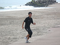 スーパー中学生ランナー・三宅一輝くんと一年振りの再会を果たしました。三宅くんは1500mと3000mで東北では無敵、来週から新潟で開催される全国中学校陸上競技選手権大会に出場します。 ここからは三宅くんの輝かしい栄光の数々です。1500mでは東北大会3連覇!今年7月の通信陸上3000m予選では8分56秒(自己ベスト)と標準記録を突破したため、この時点で全国大会へのシード権を得ています。1500mの自己ベスト記録4分4秒40は、今季中学日本ランク7位、3000mでは3位に相当しており、コーチを務めるお父さまは「こんなに逞しくなるなんて想像していなかっただけに、自慢の息子です」とおっしゃいます。 三宅くんの強さの秘密は、彼の練習への取り組み方にあります。磯浜海水浴場で行う練習、例えば60分jogや1000m×3本インターバルなどの練習メニューはお父さまによるもの。私も陸上経験者ですが、このメニューははっきり言ってキツイです!特に夏場はヘトヘトになります。これは三宅くんも感じていること。でも、弱音を吐かず自分を律するのは結果を出すため。充分お父さまに伝わっています。去年の全国大会ではまさかの予選落ち。その苦い経験と中学生活最後だから!という思いがこの一年、彼を支えてきました。 実は、彼は野球部のピッチャーで副キャプテン。坂元中に陸上部がないことから出場することになったのですが、陸上の練習は辛いけれど思いっきり走って記録が出ると嬉しい!と楽しさを知り、高校からは陸上に集中します。こう思えるようになったのも野球部の仲間の応援があったからこそ、ありがとうの気持でいっぱいです。 「今は全国大会での予選突破だけを考えています。自分は他選手についていくタイプだから、ラスト200mで勝負に出たい!」と三宅くん。一輝=一番の輝きを全国の舞台で見せて下さい! (高橋亜由美)