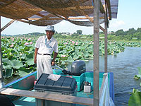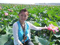 今度の日曜日まで開催されている長沼はすまつり。湖面を埋め尽くすかのように、ショッキングピンクと白のグラデーションが見事な花が静かに咲き誇っています。年々咲く面積が広がり、客足も増え、皆がこのまつりを待ち望んでいるためなのか今年は例年より早く咲き、開催日を3日早めたくらいです。極楽浄土に来たようだと和むおじいちゃんおばあちゃん、遺影を持って来られる方など思いは様々。それなら!と私たちは、船着場からヴィーナス号に乗って10分、最も花のきれいな場所に連れていって頂きました。それはそれは見事でした。傘代わりにもなりそうなほど大きな葉の緑と、ピンクの花のコントラストは圧巻です。また、極楽浄土といわれるように、静寂な雰囲気を漂わせながらも、安心感を与えてくれる花だな〜と。船頭さんの亀井さんは、亡きお母さまに会いに来るような気持で日々船を漕いでいらっしゃいます。気温が上昇すると天女の湯上りのような香りを放つハス。もしかしたら、そこには私たちの心の中にずっといる「あの人」が存在する証なのかもしれません。 朝、人知れずそっと咲くハス。花が開く瞬間の「ポン」という音は、ある和尚さんよれば邪念があると聞こえないそうな。そして、未だにそれを聞いたことのある人は誰もいないそう…。 (高橋亜由美)