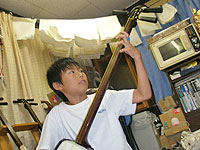 天才三味線プレーヤー、仙台出身の浅野祥さんを追いかけて、後輩達も頑張っています。祥さんと同じ師匠、小田島徳旺氏に師事する及川達也くんと須貝麻由さんは、先週末開催された第2回全日本津軽三味線競技会名古屋大会でそれぞれ優勝と準優勝を総なめ!二人とも目指すは先輩の浅野祥さんです。優勝した達也くんは大会前、祥さんからもらった腕輪をお守りに、それを足に付けて臨みました。「がんばってね」という祥さんからのエールを励みに見事優勝!もともと津軽三味線を始めたきっかけが、達也くんのおじいさんと祥さんの亡きおじいさんが民謡仲間で、発表会で力強く三味線を叩く祥さんの姿が6才の達也くんにはとても格好良く映ったから。以来、祥さんのような三味線プレーヤーになりたい!いつか僕も祥さんのようにあこがれられるような人になりたい!それが達也君の夢です。 準優勝の麻由さんも、日本一になって祥さんのように世界で演奏したい!という夢を抱いています。大会ではいつも、優勝する!という意気込みで臨みます。一番のライバルは達也くん。達也くんに勝つためにも、夏休み中も一日二時間は練習します。でも宿題の工作が残ってます…。達也くんはもっと残ってます…。 大人用の津軽三味線は時に重く、叩くには力は必要です。しかし二人はそれを物ともせず堂々と演奏し、その音色は私たちの心に響き渡ります。これからも素敵な演奏を聞かせて下さいね、達也君、麻由さん! (高橋亜由美)