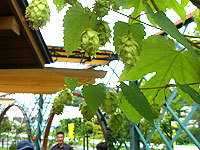 ビールの原料ホップといえば岩手県遠野市での栽培が有名ですが、実は宮城県角田市でも育てているんです。訪ねたのは、今日から収穫が始まる仙南シンケンファクトリー。5種類の地ビールを製造していて、正真正銘の地場産のものを飲んでもらおうと昨年からホップ栽培を手掛けています。 初めて見るホップ。7mもの長いツルが6本、生い茂る葉に混じるかのように、うずらの卵ほどの羽状複葉のものが!これがホップなんです。まるで緑色の小さな松ボックリのよう。小さいながらも甘くスースーした香りを漂わせ、これが製造時には苦い匂いに様変わりするというのですから驚きです。株を植えるといくつも発芽するので8本くらいに剪定すると、7月には小さな花を咲かせます。花が萎んだかな?という頃に実がなるのですが、ツルが伸びると病気にかかりやすくなるので消毒、水はけが悪いと腐るので日が当たるようツルを動かしたりノウハウのない中(県内の栽培者はおそらくここだけ)、試行錯誤で育ててきました。しかも、ホップ栽培には寒いところが適している中、角田は温暖の地。苦労は絶えません。手摘みで収穫したら香りや品質維持のため冷凍保存、その後ビール煮沸時にガーゼで包んだホップを釜に投入し香りや苦味を染み込ませます。栽培して二年目ですから、今年の収穫量はわずか200g(見込)ですが、手塩にかけて育てたホップ、出来上がったビールは最高に美味しい!と大石さん。酒の肴はいらないほどです。 これからも量を増やし、角田ならではの味に磨きをかけたい。ホップ栽培二年生、大石さんの夢は広がります。 (高橋亜由美)