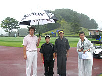 あいにくの雨ではありますが、そんなことを物とはせず真剣にボールと向き合うジュニアゴルファー。TBCジュニアフェスタは午前8時から、INとOUT同時に始まっています。出場する選手は、宮城を中心に岩手や秋田、福島の未就学児から中学生までの48人。初めて間もないプレーヤーもいれば、本格的にプロを目指すプレーヤーもいて見応えがあります。大会は、キャディを家族にすることができるのが特徴で、皆で楽しむことができるわけです。が!お父さんがいようが、お母さんが応援しようが、彼らに「甘え」はなく、むしろ一層気合いが入っています。 間もなくスタートという小野君(中2)と悠介くん(小6)。小野君は普段の大会同様、キャディに親御さんはつきません。今朝はドライバーが真っ直ぐ打ち出せず、本調子まであと一歩ですがスタートすれば感覚が取り戻せそうです。ミスしても落ち込まない深堀圭一郎を目指しています。1週間に3回、1時間の練習を欠かさない悠介くんは普段、もっと左足を踏ん張るように!とアドバイスを受けるのでそれに気をつけて臨みます。今大会の同じクラスにライバルがいますが、目指すは優勝です! やる気と楽しもう!という意気込みがいい結果を招くと川口さん。プロになる可能性を秘めた彼らの目はキラキラと輝いていました。 (高橋亜由美)