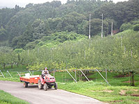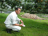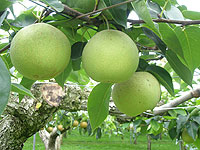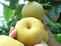 いよいよナシのシーズン!すでにスーパーには県外産のナシが並んでいますが、やっぱり地元産のナシが恋しくて…。約100軒のナシ農家のある蔵王町。佐藤隆男さんの畑でもいよいよ今日から収穫です。自宅から車で走ること3分。蔵王連邦を見渡せる眺めのいい場所に、佐藤さんのナシ畑はあります。200a、750本のナシは全部で4種類(幸水・豊水・新高・かおり)。今日から彼岸の頃までは幸水の摘果です。野球ボールくらいに育ったナシは見るからにおいしそう…。収穫を目前に佐藤さんは、糖分と大きさが気になって仕方のない様子。教わった通り、まんべんなく黄土色で丸いナシ(これがおいしいナシの見分け方)を頬張ると、ジュルっとした汁が!シャリシャリ、甘さが口いっぱいに広がります。最高です!7月以降の日照のおかがで糖分をぎゅっと閉じ込めて、果実も大きく育ったのです。また、佐藤さんの畑では土壌に堆肥を混ぜ、土を柔らかくしてしっかりした根を張らせています。こうすることで美味しく、大きなナシが育つのだそうです。幸水の収穫が終ったら次は豊水。10月末まで収穫作業は続きます。 (高橋亜由美)