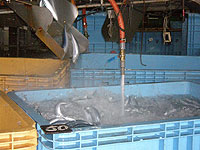 本州一のサンマの水揚げ量を誇る女川町。女川港のサンマの総水揚げ額は、全体の三分の一を占めているほどです。今年は期待通り豊漁で、今月21日に初水揚げされました。今朝5時、石巻の船がおととい北海道で獲ったサンマ40tを、次いで同じく石巻の船が30tを積み女川魚市場に入港。今のところ150gくらいのサンマが中心で、それより大きいものも小さいものも少ないサンマが獲れています。今年は資源が豊富なため、水産庁が漁獲枠を増やし、暴落防止のため9月4日までは1隻あたり140tまでと制限されています。5日以降は無制限になるため、一日休漁しながらの漁になります。この頃になると、私たち消費者にとっては手頃な値段で買えそうです(今は店頭価格が150円近いだけに買うのをためらうことも…)。でも、「一尾100円は切らないだろうけれど、燃料が高騰しているので安価は望まないで!」というのが山本社長の本音。今年は12月半ばまで漁が続くと見込んでいるだけに、燃料費は確かに気になるところです(女川では、年間5000万円以上のサンマを水揚げする漁船に、水揚げ額の1000分の1が補助されることが決まっています)。サンマを食べて健康に!と消費量の推進にも積極的な山本社長。早速、今晩はサンマにしようと思います。 (高橋亜由美)