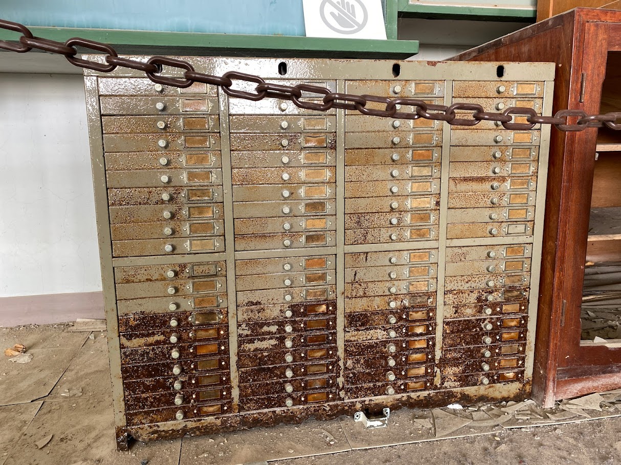 4階のレターケース25~30センチ付近に津波の跡。残された避難場所は屋上しかなかったことがわかる。