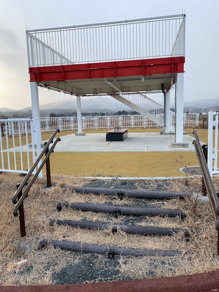 気仙沼市東日本大震災遺構・伝承館は、震災の記憶と教訓を将来に繋ぐために「目に見える証」として当時の気仙沼向洋高校の敷地内に2019年に開館しました。南校舎は当時の悲惨な状況をそのまま残しています。現在は伝承館の正面に地元の人たちの憩いの場であるパークゴルフ場があり、取材に訪れた日も多くの地域住民でにぎわっていました。