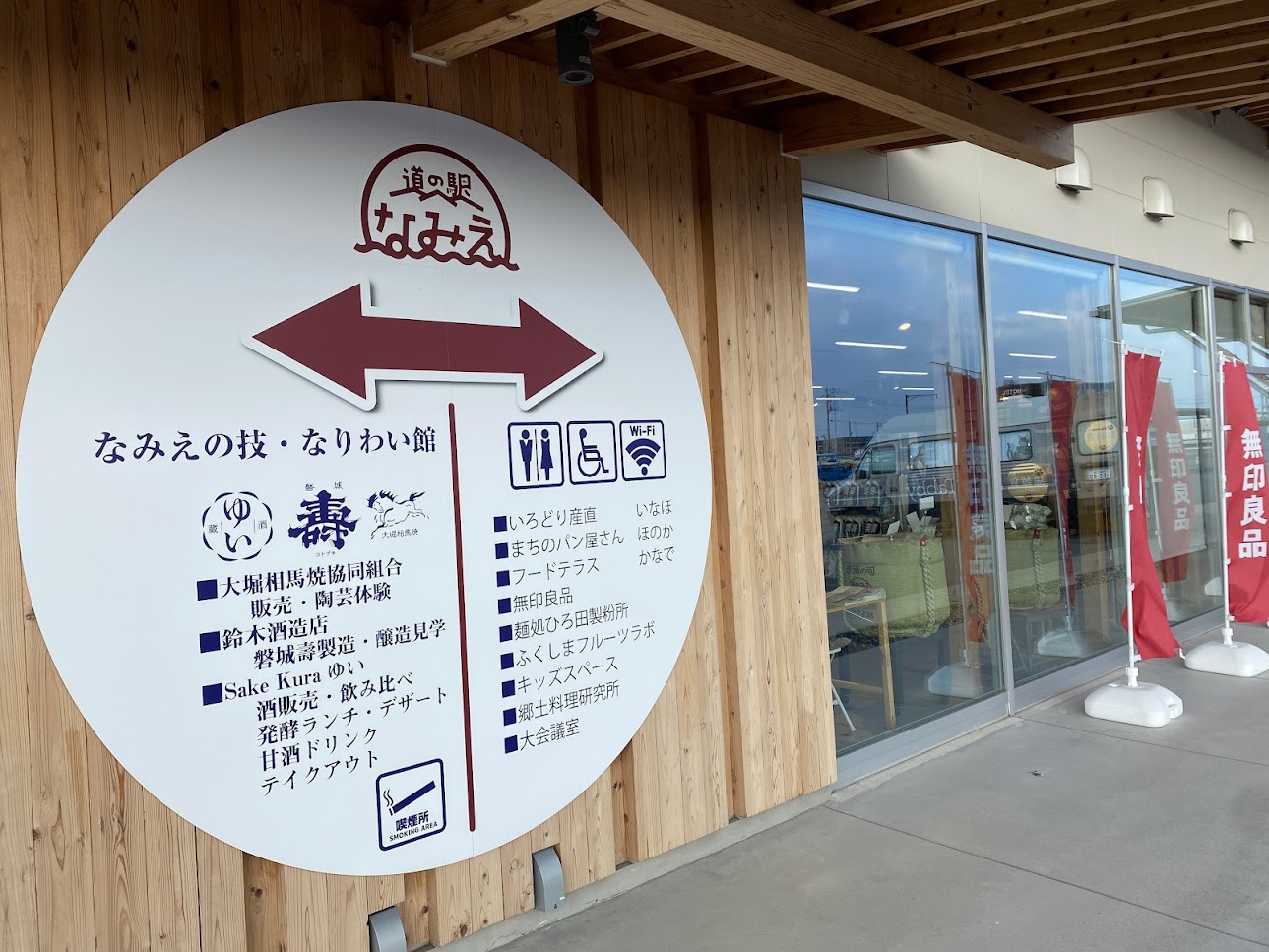 道の駅なみえには無印良品のほか、震災前まで最も海に近い酒蔵と言われた鈴木酒造店がモダンな店舗を構えている。