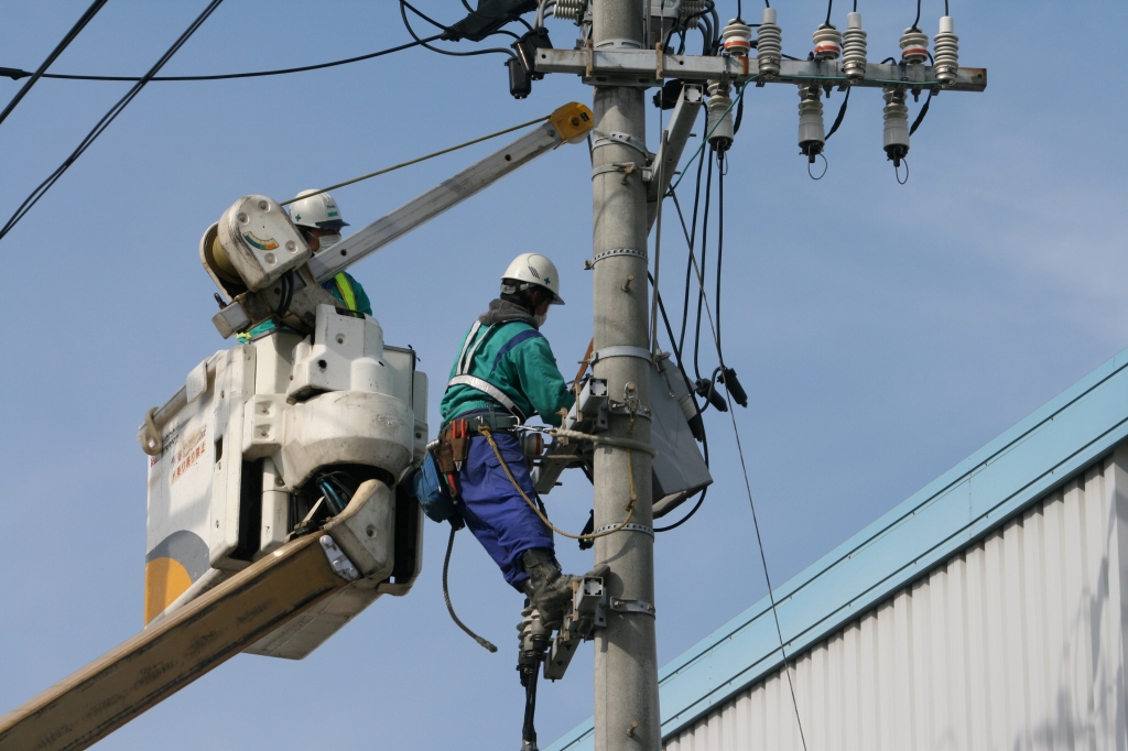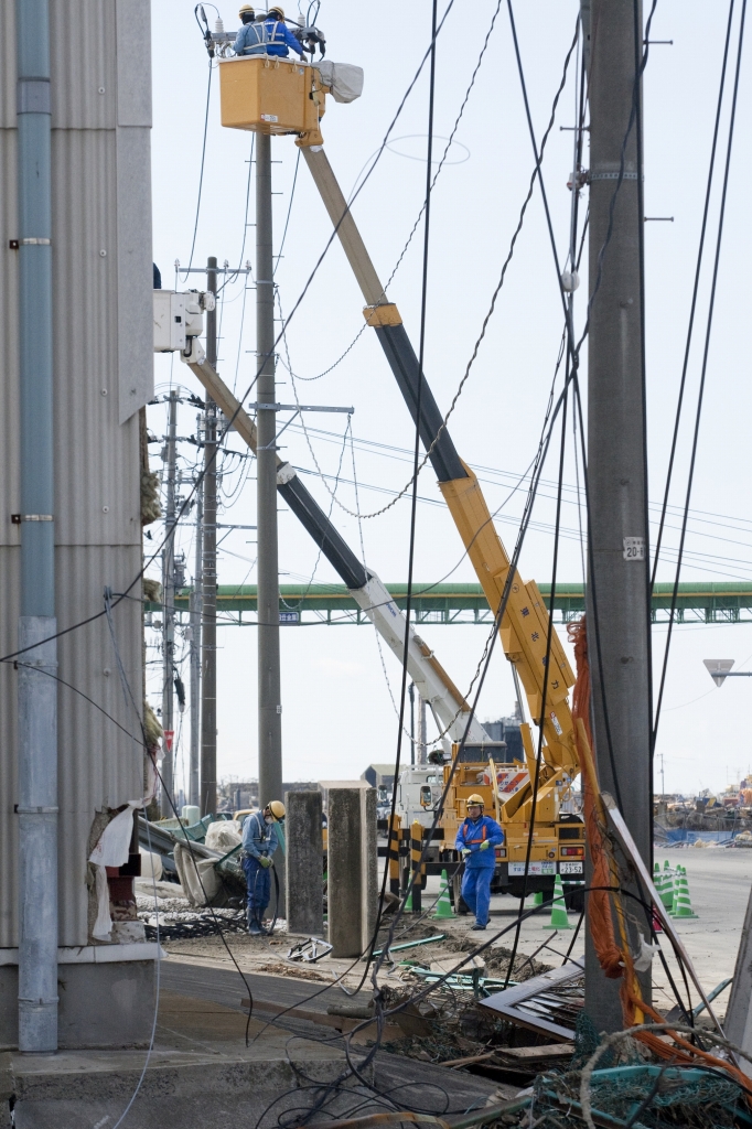 異常があったから停電した。それらを正常に戻すための懸命な作業が続いた。(写真は石巻市での復旧作業の様子)