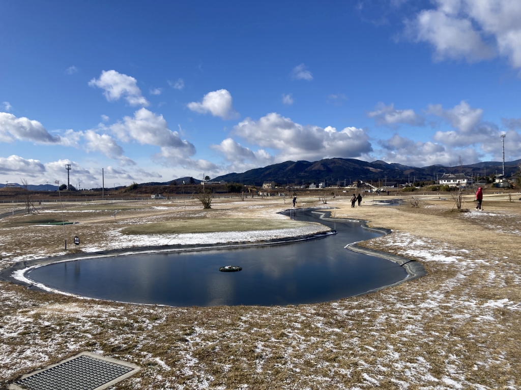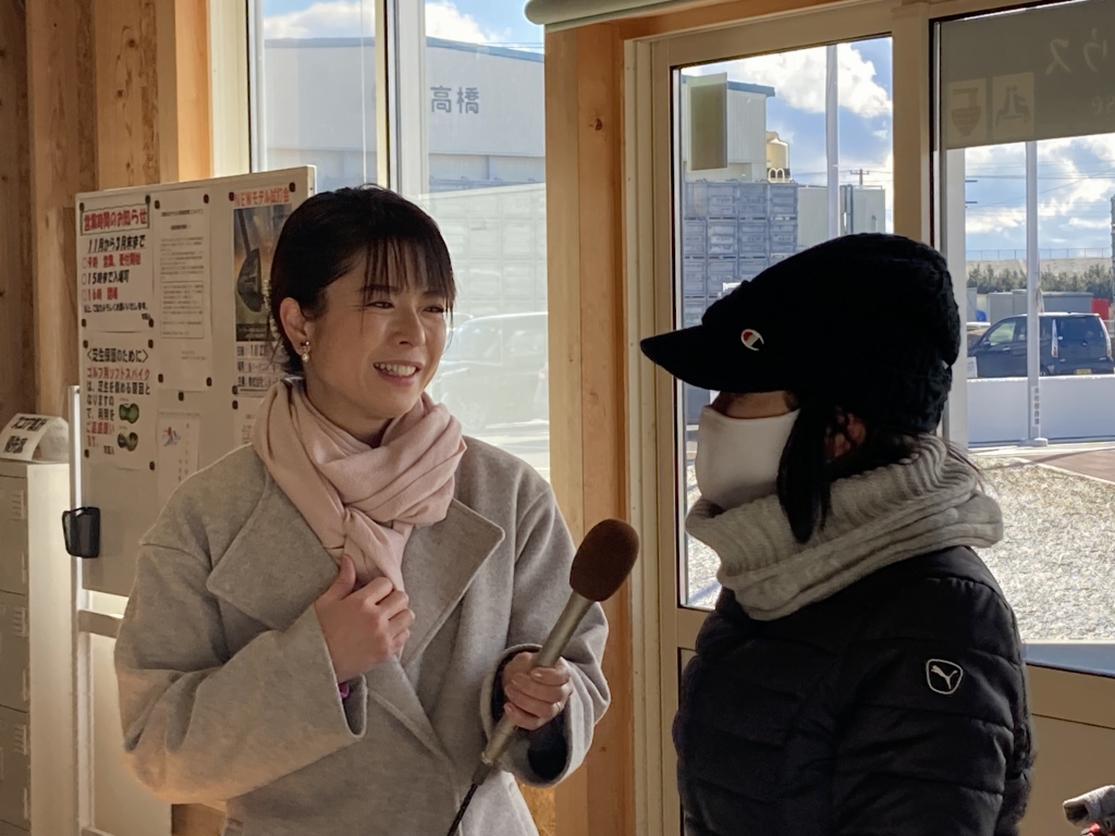 しかし到着すると、そこには笑顔でホールを回る方々の姿がありました。東北地方のパークゴルフ場は冬の期間雪が積もってしまいプレーできなくなるところが多いのですが、気仙沼パークゴルフ場は一年中楽しめるコースとして、気仙沼近隣だけでなく全国からお客さんが集まります。しかも冬は、コースの池が凍って、いわゆる「池ポチャ」もないため、スコアも期待できるんだとか…