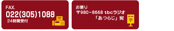 番組ではあなたからのあつあつなメッセージをお待ちしています!メールアドレスはこちらFAXとお便り
