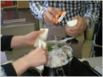 1) ねぎはざっくりと切り、鍋に入れる。 2) サバ水煮缶をほぐしながら汁ごと加える。 3) 大根とにんじんは、ピーラーでスライスしながらなべに入れる。 ![]() 4) 豆腐はスプーンですくって鍋に加える。 5) 調味料と水を加え、蓋をして野菜がしんなりするまで煮る。 6) 皿に盛って、いただきます。(食べる際に、七味をかけるとGOOD!) ★ポイント★ ※ねぎを鍋に入れた後、焦がさないようにお酒か水を入れること。 |
