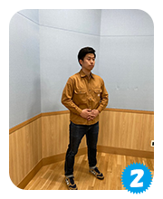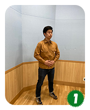まずは基本のスクワットから実践します。立った状態で行います。