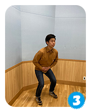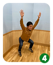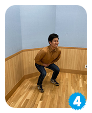 可能であれば、お尻をひざの高さまで下げてみてください。できる限りお尻を下げたら、元の体勢にゆっくり戻します。