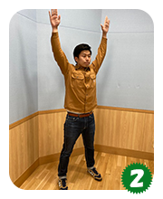 さらに両手をバンザイのように上げます。できれば両手は頭より後ろにしてください。