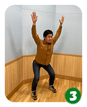 続いて負荷の大きい「ばんざいスクワット」に挑戦します!基本と同じ体勢から始めます。