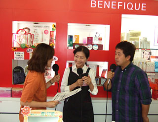 佐藤さんに健康法をお伺いしたところ開店前にスタッフみなさまで体操をするのが健康の秘訣らしいです!どんな体操なのかと伺って、はすみ、ワッキーさん、佐藤さん、そして会場のみんなで体操をしました!