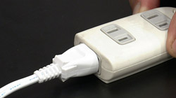 乾電池とコンセントの電気で発光ダイオードの灯りを点け、直流・交流の違いを調べます。