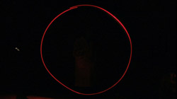 どうするのかと思ったらミッキー先生、発光ダイオードがついたコードを回し始めたよ。