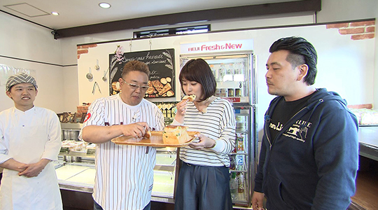 パンや洋菓子などを製造・販売する「パレット築舘本店」。おすすめは、創業以来30年以上変わらぬ味でつくり続けていると言うロングセラーの青豆パン。1日約200個は売れるというパンです。また地元の枝豆を使用したずんだジャムも人気で、和に良し洋に良し、食べ方はアイデア次第!!