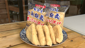 揚げたての大きな三角あぶらあげが味わえます。特製のお醤油と七味をかけて、おもいきりかぶりついてください。ご存知、民謡歌手の庄司恵子さんのご実家の家業でもあります。
