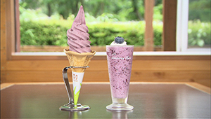 また、同じ敷地内にレストハウスもあり、農園でとれたブルーベリーのスムージーやソフトクリームも味わえます。ジャムなどの加工品も購入可能です。