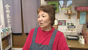 円田地区で90年続く菓子店。もともとはお菓子だけではなく日用品を販売するお店として開かれたのが始まりだったそうです。4代目店主の会田ともさんは、早朝3時ころから、お店に並べるお菓子すべてをひとりで作っています。