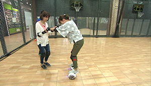 電動の立ち乗り二輪車『バランススクーター』。重心移動で前後自由に進み、くるくる回ることもできます。お買い物しながら、ちょっと体験してみませんか。