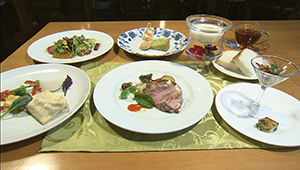 一番人気のプチコースは、前菜・スープ・魚料理・肉料理・デザートまでついています。目にも美味しい彩りあざやかな野菜や地元のお肉などを使った地産地消のお料理は、器や盛り付けにまで気持ちをいれて仕上げているそう。四季折々の花が美しい、庭園も魅力ですよ。