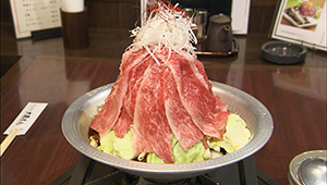 こちらの「肉鍋」には仙台牛が250gも使われているんです。肉の下にはたっぷりヘルシーなもやしが山盛り。店員さんが、すこしずつ崩していい塩梅に作ってくれます。すき焼き風の味付け、生卵を追加してくぐらせて食べるお客さんもいるそうですよ。