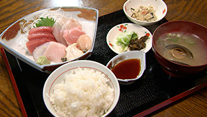 創業明治26年の老舗で、当時は鮮魚店だったそうです。今から二十数年前からは精肉も販売し、近年食事処としての営業も始め、地域で愛されているお店です。鮮魚、精肉どちらも扱っているお店ですから、お刺身も新鮮、いいお肉を楽しめる定食も選べます。