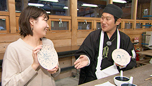 門真菓子店のおかみさんがおすすめしてくれた陶芸館。江戸時代後期から明治の初めまで生産されていた“切込焼”が展示されています。また、陶芸体験・絵付け体験もできるということで、素焼きのお皿の絵付けに挑戦。下書き無しで集中、とても貴重でよい時間が流れました。