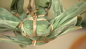 青根温泉の名物・笹だんごは、笹の葉をむくと中から柔らかいお餅が顔を出します。ねっとりもっちりとした餅の食感に笹の風味が爽やかで、ついつい食べ過ぎてしまいそうです。