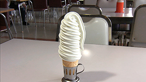 昨年6月に惜しまれつつ閉店しましたが、6階の大食堂が今年の2月に復活しました。メニューはもちろん、店内もこれまでと同じレトロな雰囲気。10段に巻かれた名物のソフトクリームも健在です。割り箸で召し上がれ。