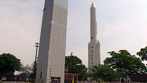 まちの中心部の台山公園には純国産ロケットH-2の実物大模型が設置されています。